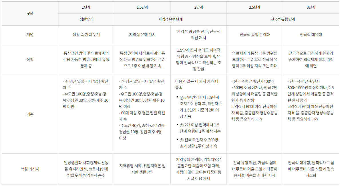 현재까지 시행되고 있던 1, 1.5, 2, 2.5, 3 단계별 지침
