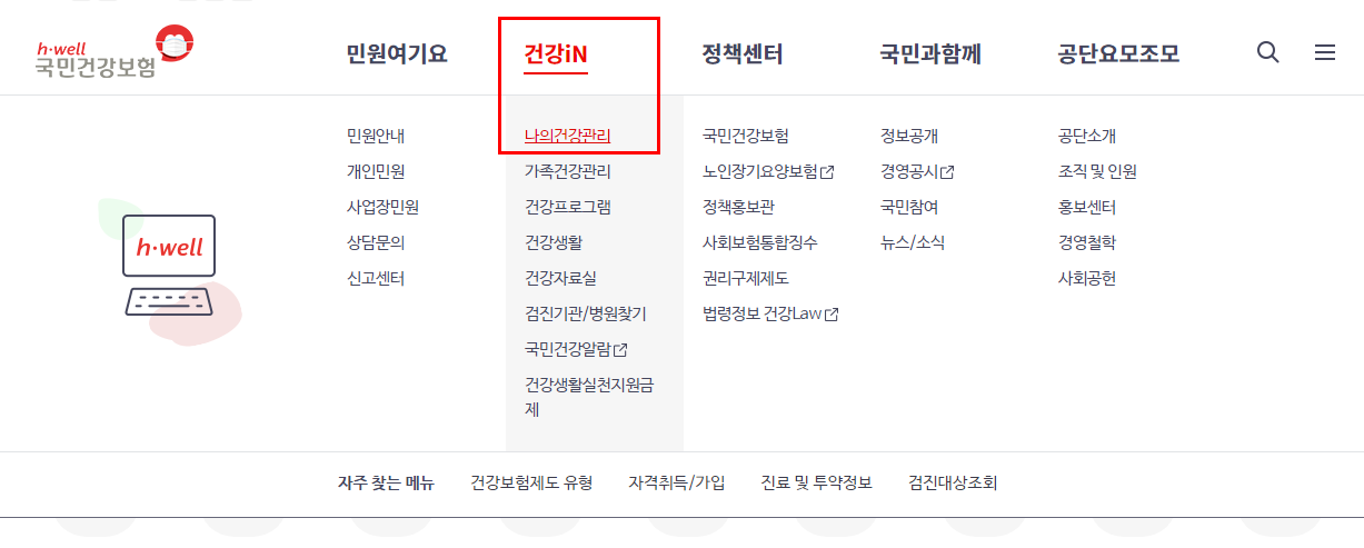 우선 국민건강보험공단 홈페이지에 접속합니다.