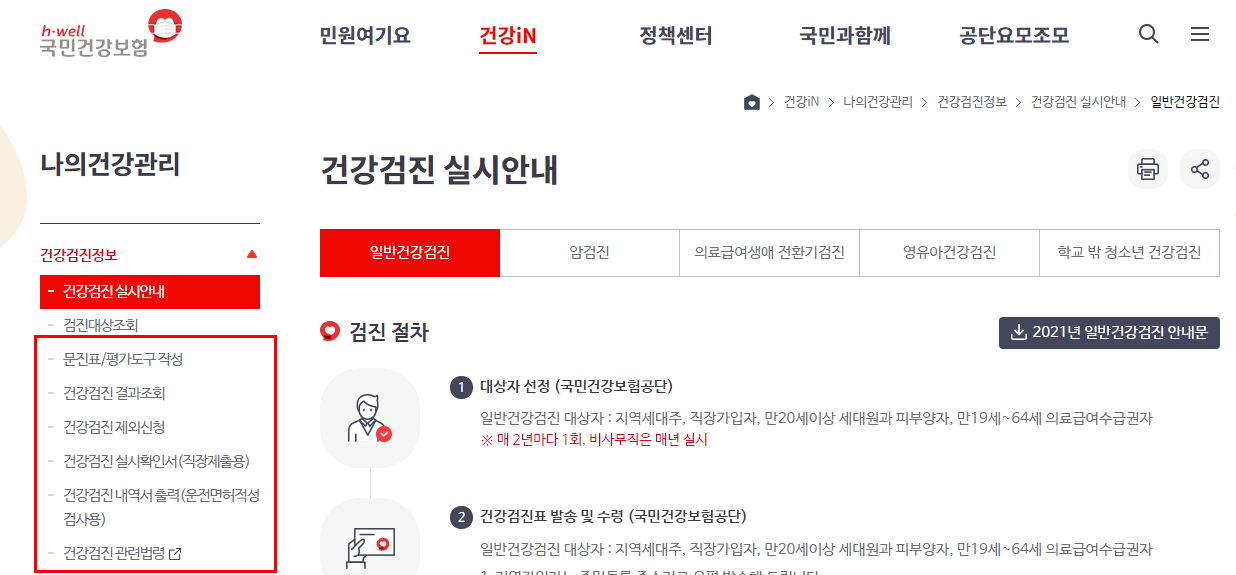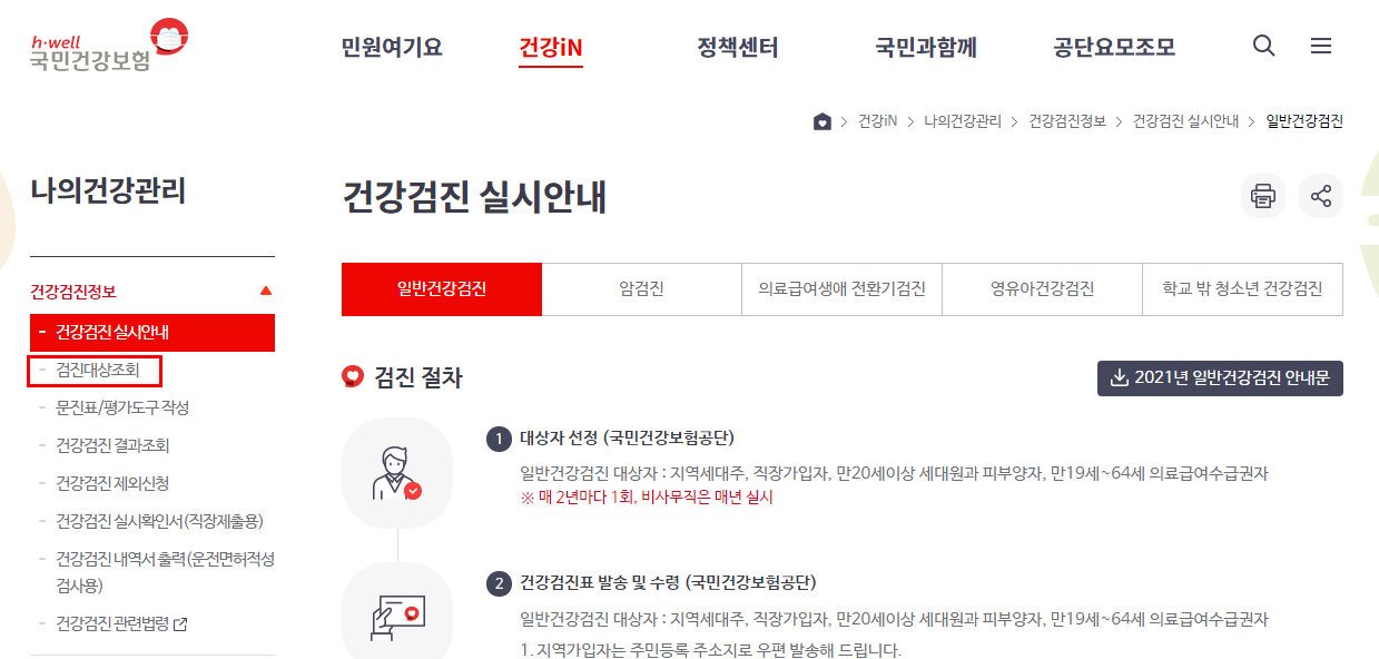 국민건강보험공단에서 주관하는 일반 건강검진 대상자를 조회하는 방법을 설명해 드리겠습니다.
