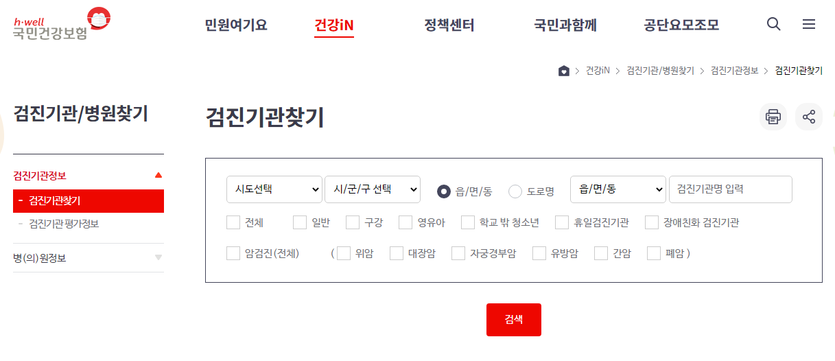 해당 홈페이지에서 검진기관도 직접 찾아보실 수 있습니다. 생각보다 집과 가까운 곳이 많이 있으니 찾아보시고 방문이 편안한 곳으로 가시면 됩니다. 편의를 위해 바로가기 링크를 넣어놓겠습니다.