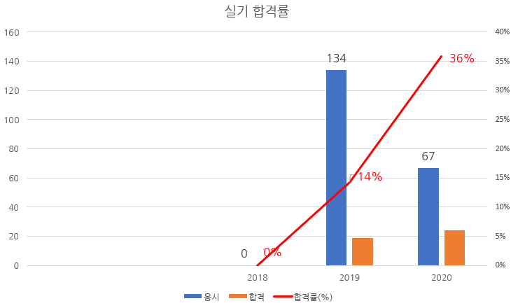 최근 3년 실기시험 합격률을 차트로 정리해 보면 다음과 같습니다.