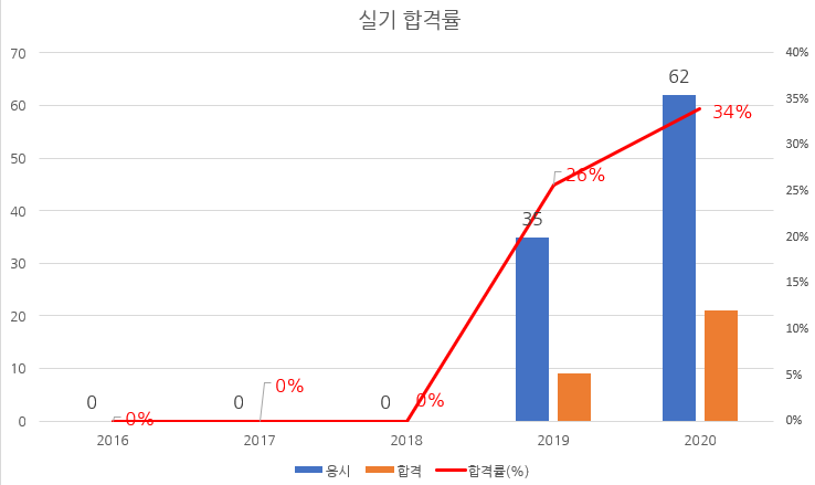 최근 2년 실기시험 합격률을 차트로 정리해 보면 다음과 같습니다.