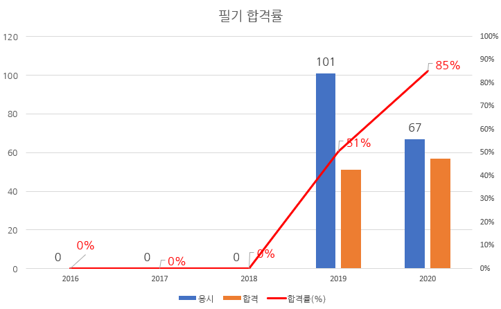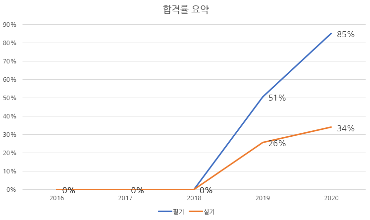 필기와 실기시험 합격률을 정리하면 다음과 같습니다.