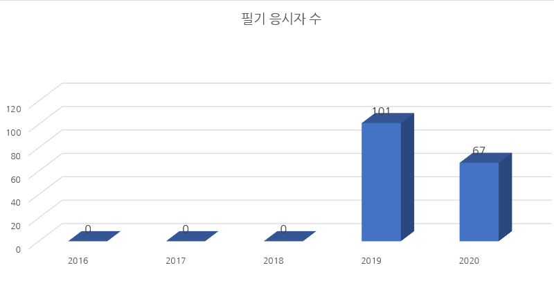 최근 2년 필기시험 응시자 수를 차트로 정리해 보면 다음과 같습니다.