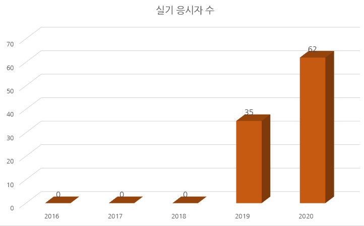 최근 2년 실기시험 응시자 수를 차트로 정리해 보면 다음과 같습니다.