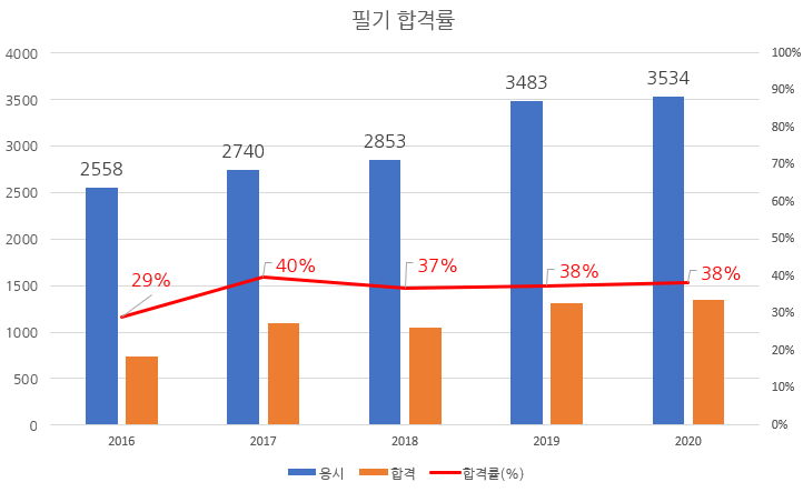 필기와 실기시험 합격률을 정리하면 다음과 같습니다.