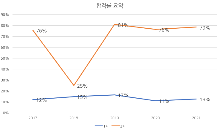 1차와 2차시험 합격률을 정리하면 다음과 같습니다.