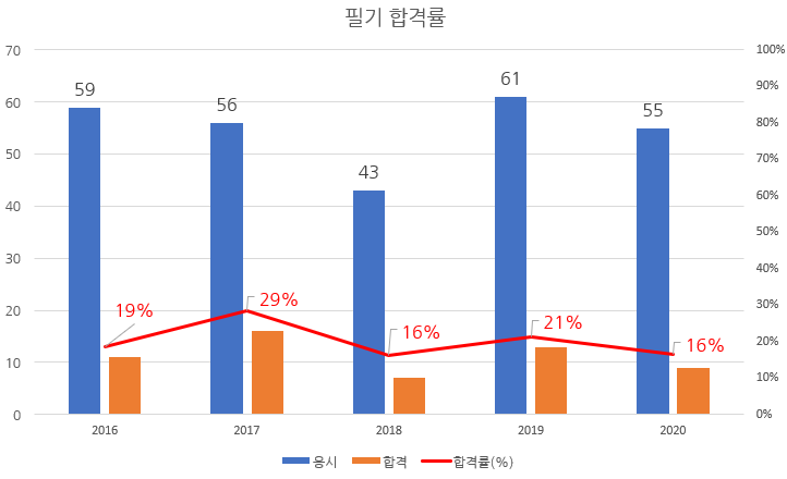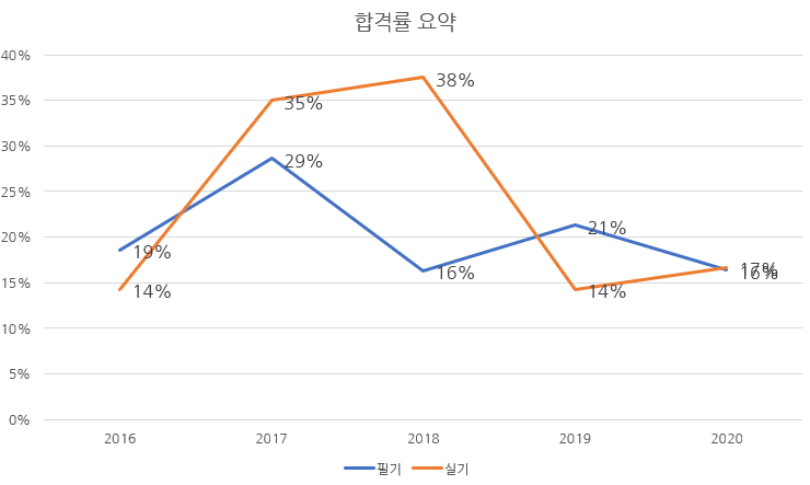 필기와 실기시험 합격률을 정리하면 다음과 같습니다.