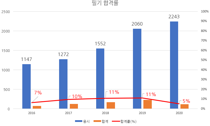 필기와 실기시험 합격률을 정리하면 다음과 같습니다.
