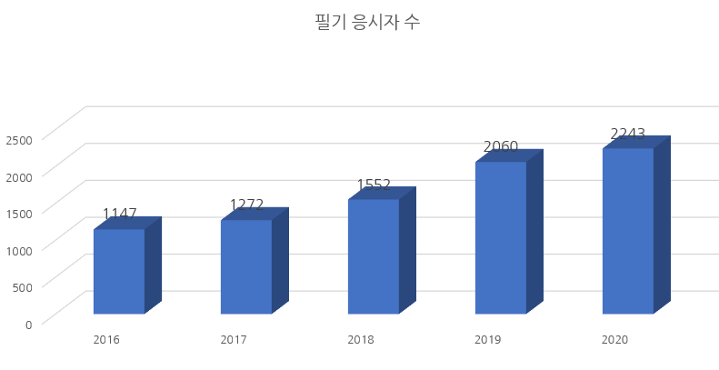 최근 5년 필기시험 응시자 수를 차트로 정리해 보면 다음과 같습니다.