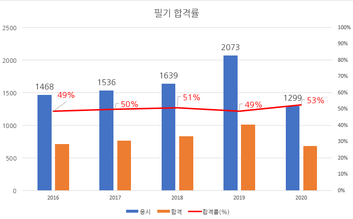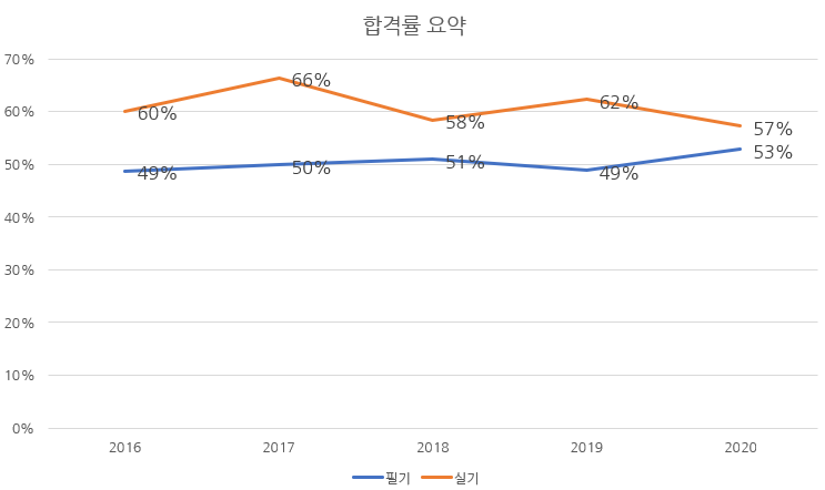 필기와 실기시험 합격률을 정리하면 다음과 같습니다.