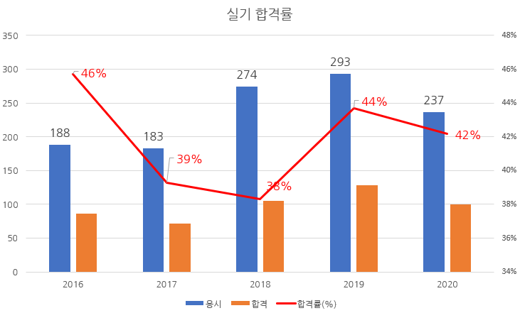 필기와 실기시험 합격률을 정리하면 다음과 같습니다.
