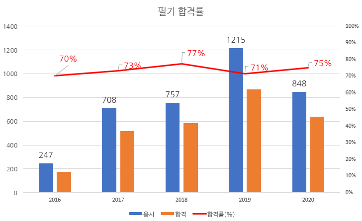 필기와 실기시험 합격률을 정리하면 다음과 같습니다.