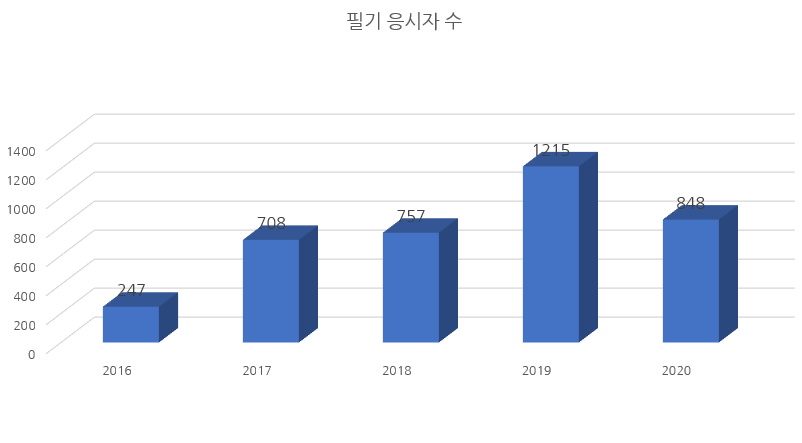 최근 5년 필기시험 응시자 수를 차트로 정리해 보면 다음과 같습니다.