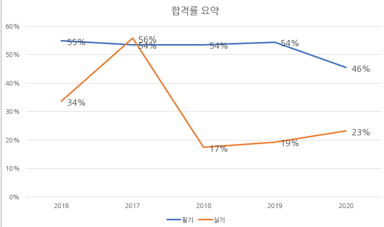 필기와 실기시험 합격률을 정리하면 다음과 같습니다.