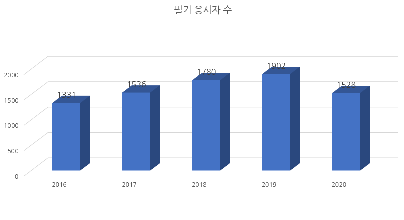 최근 5년 필기시험 응시자 수를 차트로 정리해 보면 다음과 같습니다.