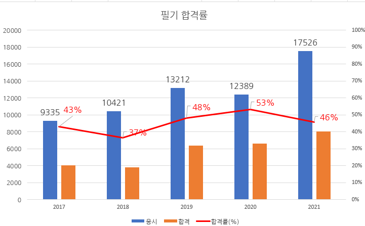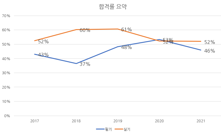 필기와 실기시험 합격률을 정리하면 다음과 같습니다.