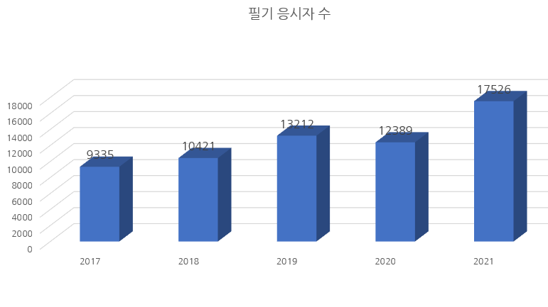 최근 5년 필기시험 응시자 수를 차트로 정리해 보면 다음과 같습니다.