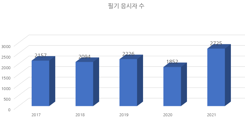 최근 5년 필기시험 응시자 수를 차트로 정리해 보면 다음과 같습니다.