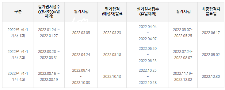 - 필기시험 - 2022년 3월 5일 / 4월 24일 / 9월