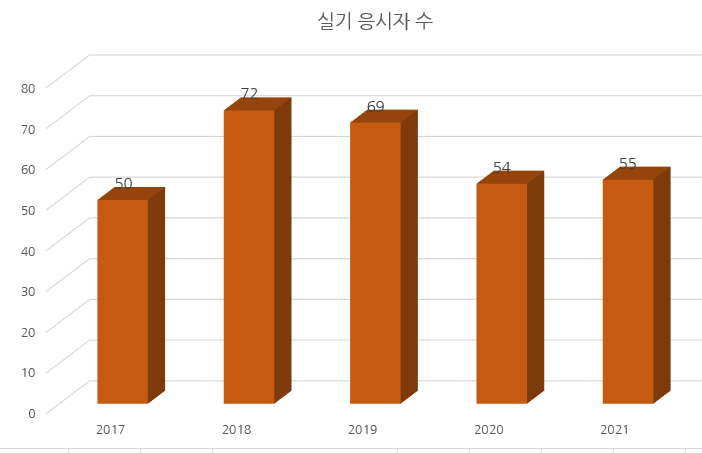 최근 5년 실기시험 응시자 수를 차트로 정리해 보면 다음과 같습니다.