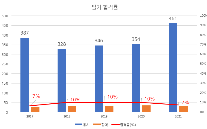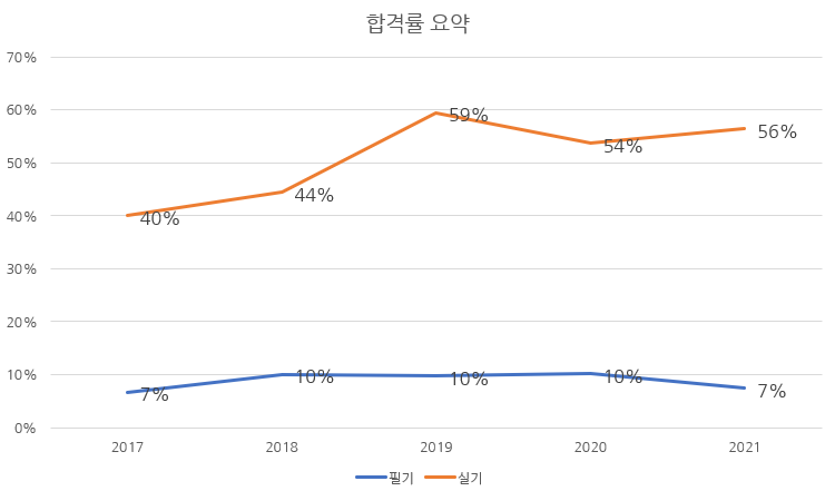 필기와 실기시험 합격률을 정리하면 다음과 같습니다.