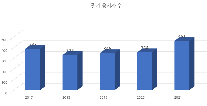 최근 5년 필기시험 응시자 수를 차트로 정리해 보면 다음과 같습니다.