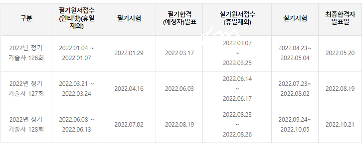 - 필기시험 - 2022.01.29 / 2022.04.16 / 2022.07.02