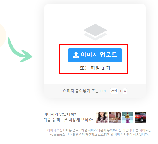 홈페이지에 접속하면 첫 화면에서 이미지 업로드 하는 화면이 바로 보입니다. 누끼 따기를 하고 싶은 이미지 파일을 드래그해서 홈페이지 위로 이동하면 바로 이미지 업로드가 가능하게 됩니다.