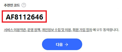 마지막으로 추천인 코드가 있습니다.